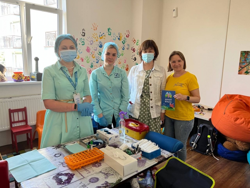 Напередодні Дня захисту дітей в рамках проекту «Тобі слід знати про туберкульоз: активне виявлення випадків туберкульозу серед осіб, які опинились у складних життєвих обставинах» команда м. Києва, за участі медичних працівників, провела спеціалісти Київський міський центр соціальних служб у співпраці з КНП "Київський фтизіопульмонологічний центр" у травні провели дослідження (квантифероновий тест) з виявлення латентної туберкульозної інфекції серед 30 дітей із сімей внутрішньо переміщених осіб (ВПО).