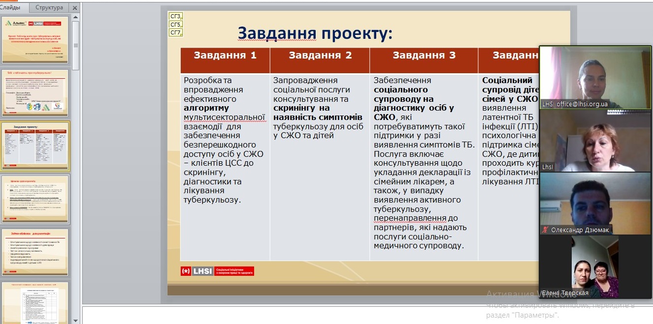Соціальним працівникам також було презентовано новий розділ сайту LHSI Тобі слід знати про туберкульоз з навчальними відео з питань туберкульозу та його особливостей, та надано рекомендації по використанню цієї інформації для самостійного оволодіння знаннями та дистанційного навчання.