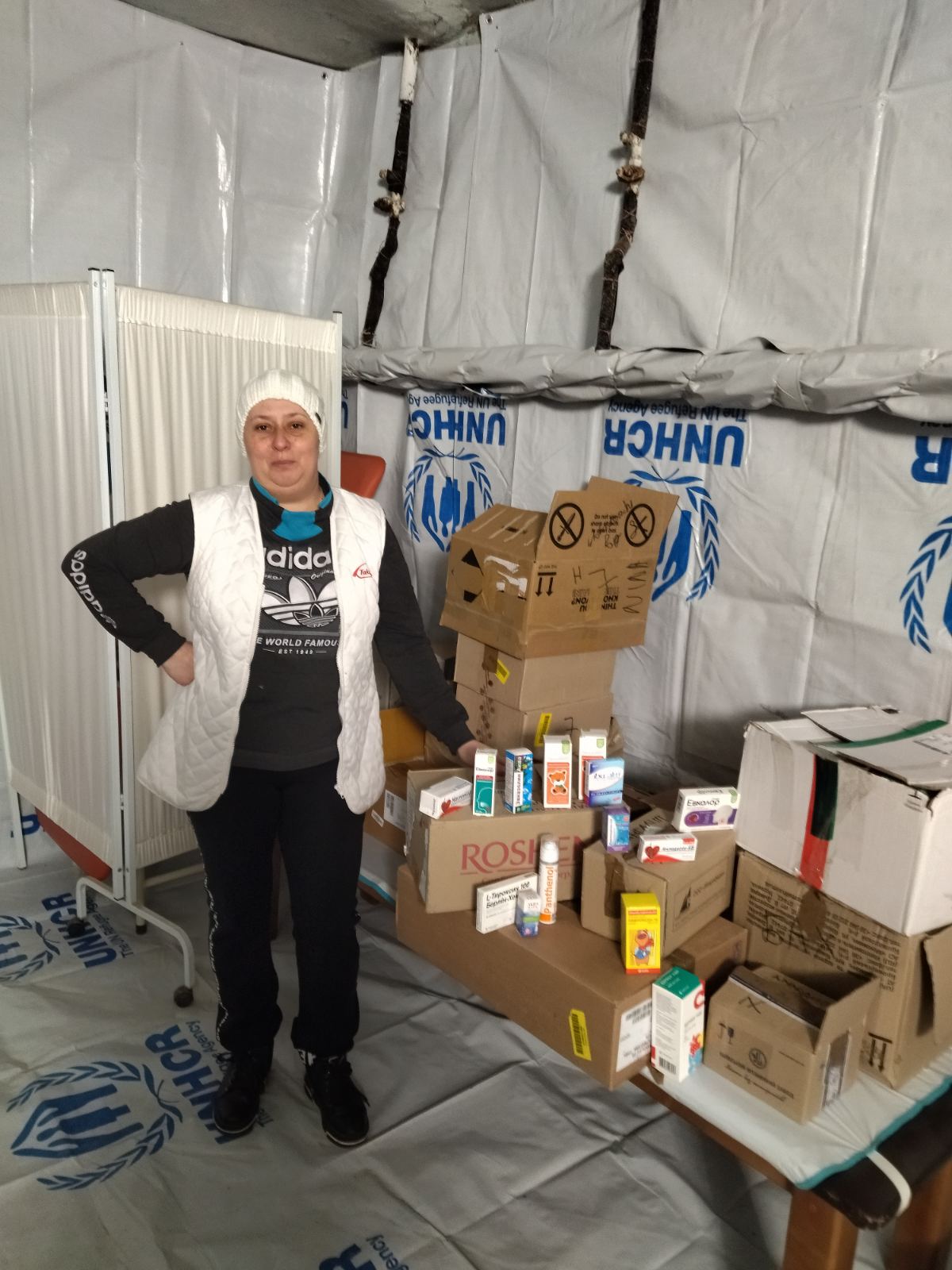 «Зараз я мешкаю в укритті, тут безпечніше. І прийом людей проводжу також в укритті, тут обладнаний офіс, є необхідні препарати, які приносять волонтери. Їжа, вода, світло теж є. Є генератор і поки ще є паливо», — описує свої нинішні дні Олена Молчанова і додає: «Але я вірю, що в ЗСУ — все буде добре».
