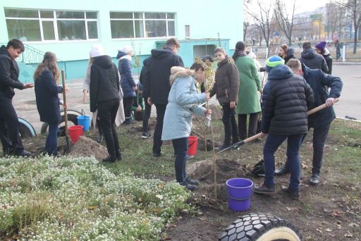 Перед самою висадкою дерев, учасників порадували танцями і співами юні таланти - представники шкіл Дарницького району.