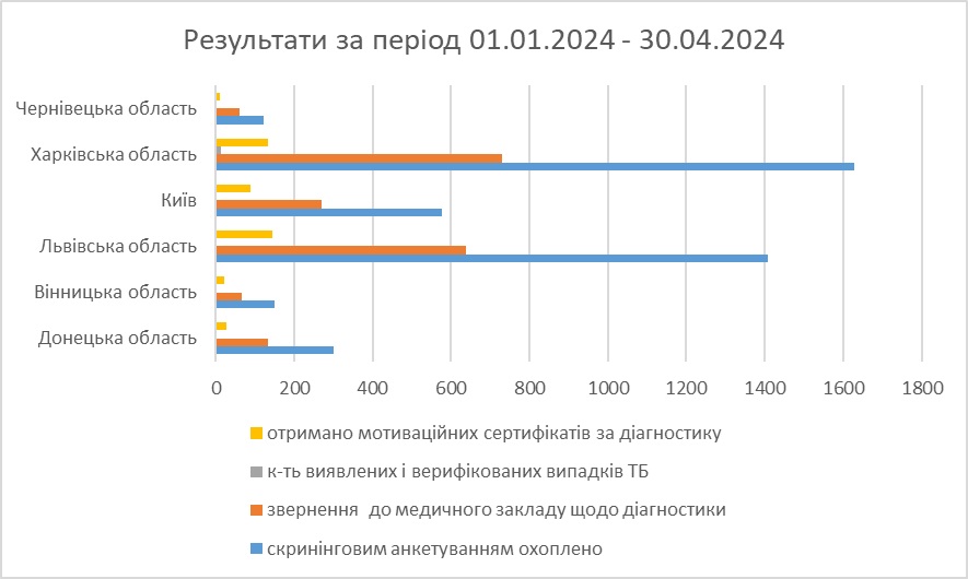 Таким чином, за перші чотири місяці скринінг-анкетуванням було охоплено 4186 осіб, а 1901 особа звернулась до медичного закладу щодо діагностики. При цьому клієнти проекту отримали 430 мотиваційних сертифікатів. І загалом за період виявлено та верифіковано 19 випадків ТБ.