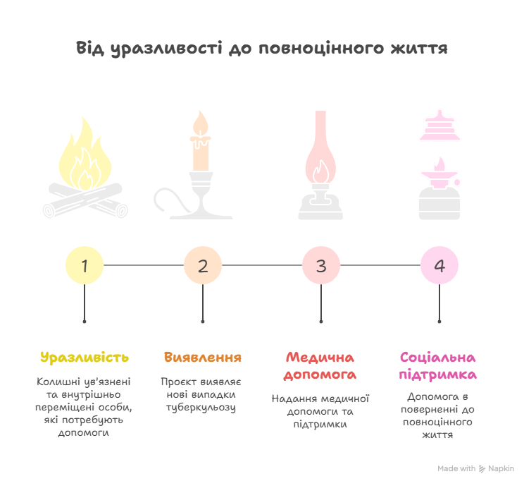 Проєкт «Тобі слід знати про туберкульоз» працює й в Києві. Як і в інших регіонах, соціальні працівниці тут організовують діяльність з активного виявлення нових випадків туберкульозу (ТБ/ХРТБ) серед уразливих груп - колишні ув’язнені та ВПО.